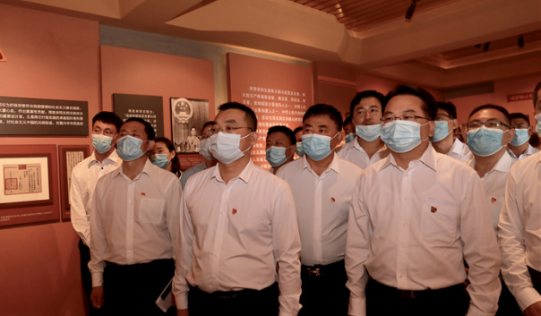 活動分兩個階段進行。第一階段到楊柳雪不忘初心黨性教育基地參觀學習,接受紅色教育,市委副書記、市長宋永祥帶領(lǐng)黨員企業(yè)家重溫入黨誓詞。