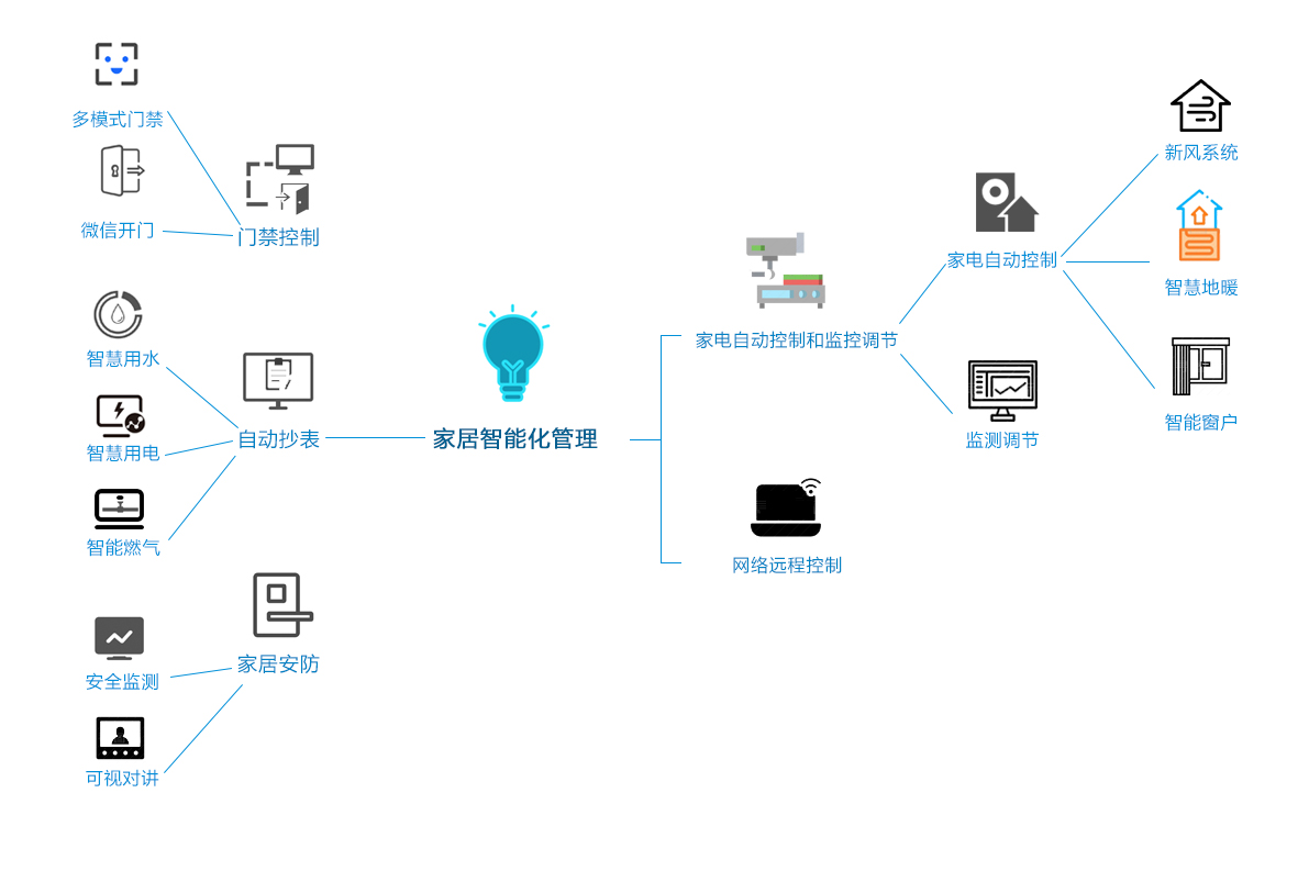 智慧房產(chǎn)板塊建設(shè)主要基于物聯(lián)云技術(shù)對(duì)家中智能電器實(shí)現(xiàn)一鍵掌控,實(shí)現(xiàn)居住功能升級(jí),打造綠色、節(jié)能、全面舒適的智慧生活。